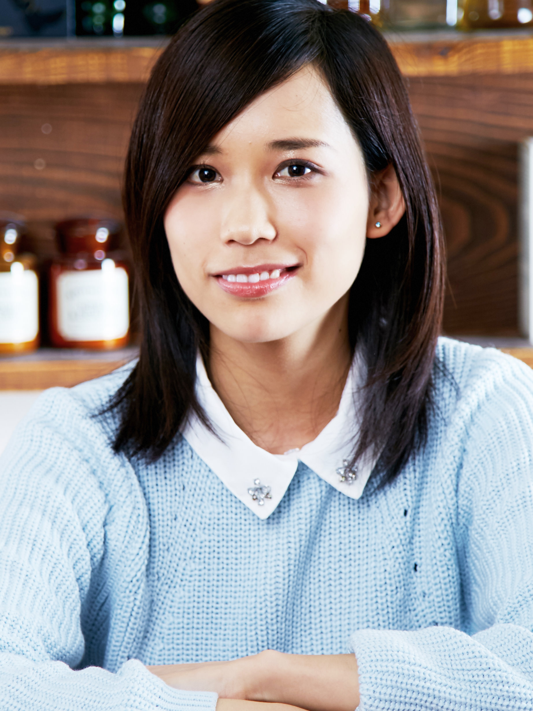 顔周り、毛先はほんのり内巻きにして柔らかさも演出。