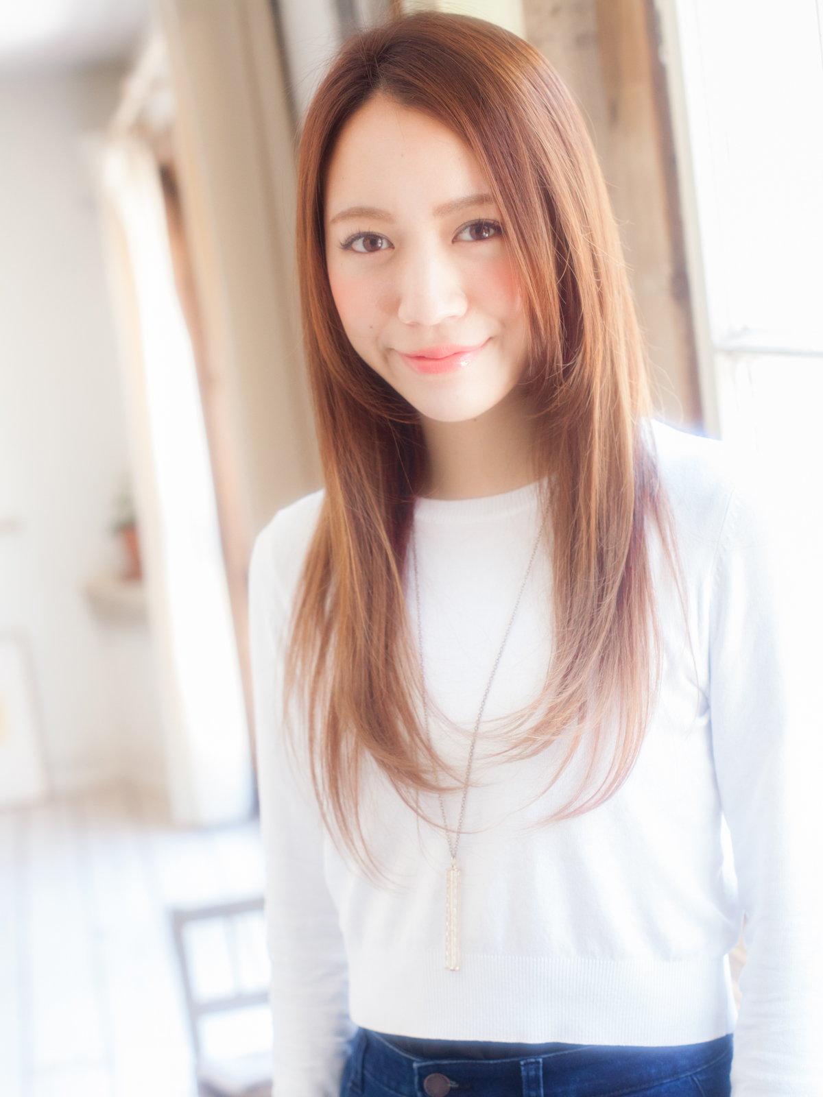 明るめのカラーで、ストレートロング特有の